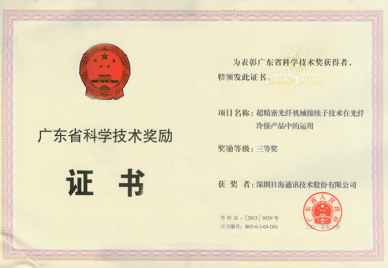 • In January, broadband cabling equipment won the "Guangdong Provincial Key New Product" honorary certificate.