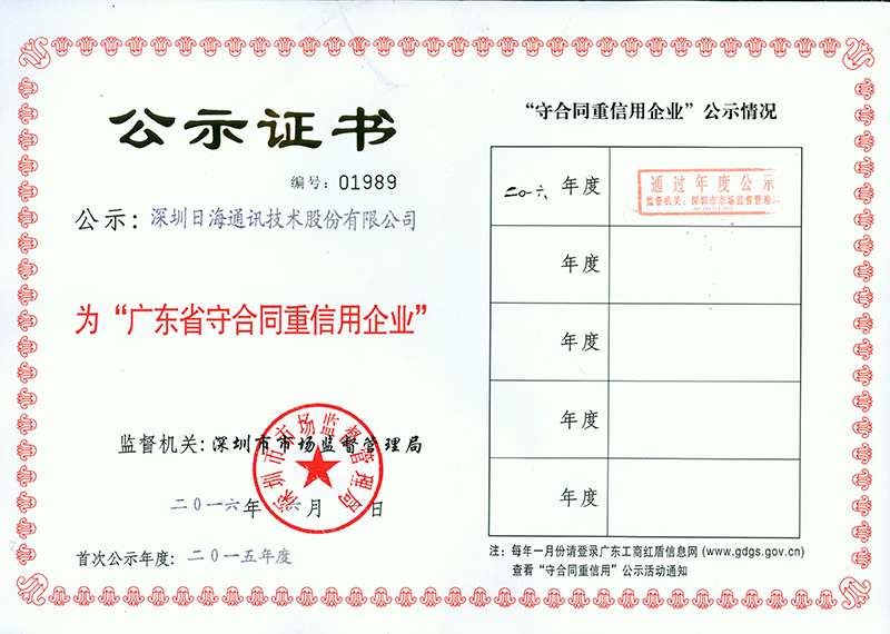 • In October, was awarded "good faith small and medium enterprises" by Shenzhen SME Credit Guarantee Center.